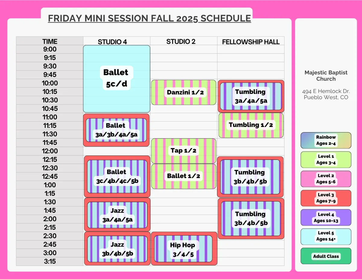 Classes focused on a more mature crowd. Some classes start at age 14, with others at age 16.